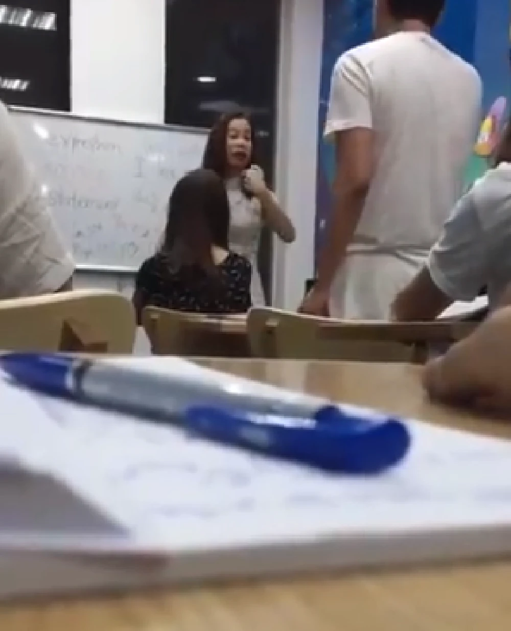 Cô giáo và học viên văng tục chửi nhau. Ảnh cắt từ clip