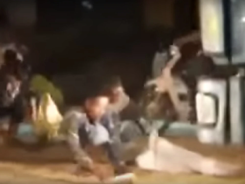 Người dân đổ ra đường nhặt bắp bị đổ ra đường. Ảnh cắt từ clip