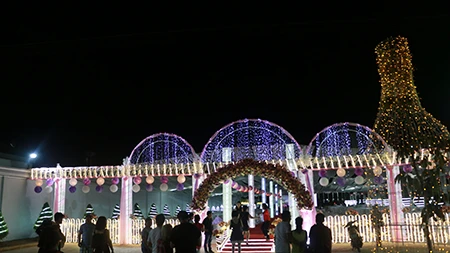 Gia chủ cũng chi mạnh tay để làm rạp hoàn toàn bằng khung sắt chắc chắn, lót thảm đỏ như kiểu xây hẳn một nhà hàng tiệc cưới ngoài trời. Nhiều khâu vật liệu, dàn nhạc, bàn ghế phục vụ đám cưới đều phải thuê từ Sài Gòn cho 1.500 thực khách. Hệ thống đèn phục vụ cho đám cưới đều là đèn LED.