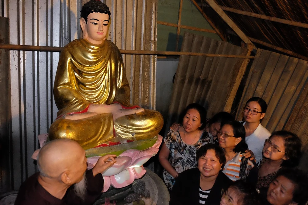 Hay phải mất hơn hai tiếng, một chiếc xe khác chở tiểu thương ở chợ Kinh Nước Mặn Cần Đước (Long An) mới tới được chùa. Bà Vương Thị Tơ cho hay: “Mặc dù tôi không theo đạo Phật nhưng tôi vẫn muốn nhìn tận mắt một lần loài hoa này. Sống hơn sáu chục tuổi, đây là lần đầu tiên tôi được thấy hoa, chắc hẳn đây là cái duyên, điềm lành sắp đến với mình".