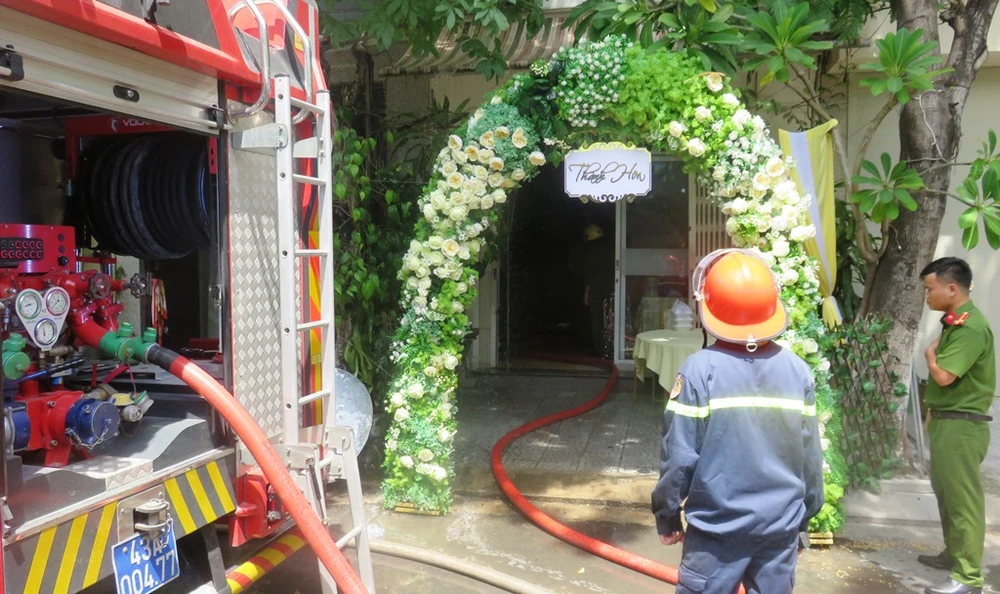 Trưa 10-9, khói lửa bốc lên nghi ngút từ tầng 3 căn nhà nằm trên đường Tân Lập (phường Thạch Thang, quận Hải Châu, Đà Nẵng). Đây là căn nhà gia đình vừa tổ chức xong lễ thành hôn cho con trai họ, mọi người vừa đóng cửa đi nhà hàng dự tiệc cưới thì hỏa hoạn xảy ra.