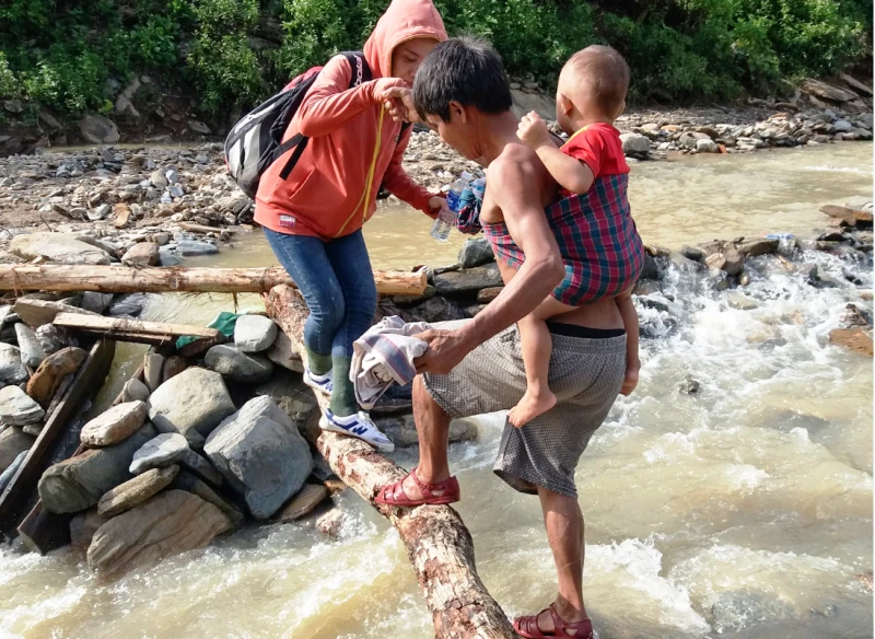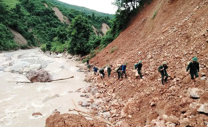 Không còn đường, bộ đội lội suối, leo núi, hành quân vào giúp trường học và các gia đình bị ảnh hưởng do lũ.