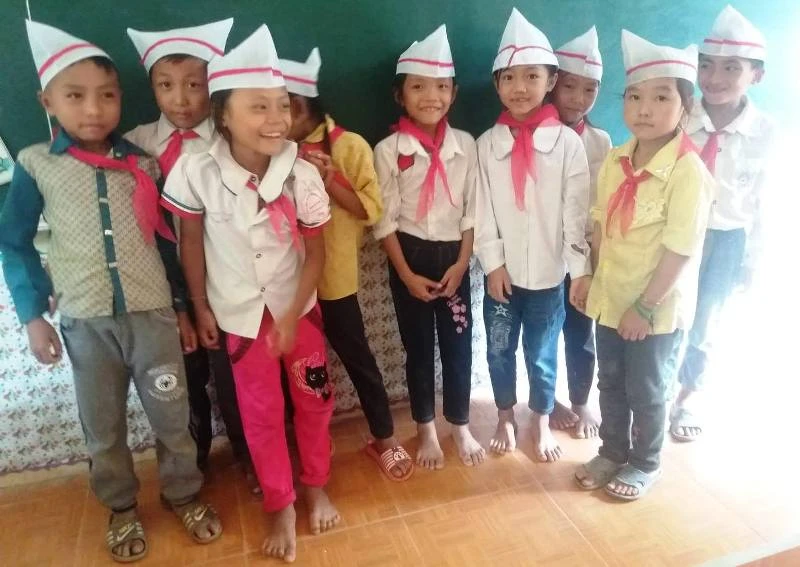 Học sinh đến trường có em vẫn chưa có dép để đi.