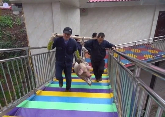 Một công viên giải trí tại Trung Quốc đã bắt một con heo nhảy bungee để khai trương dịch vụ nhảy bungee tại công viên này, South China Morning Post đưa tin.