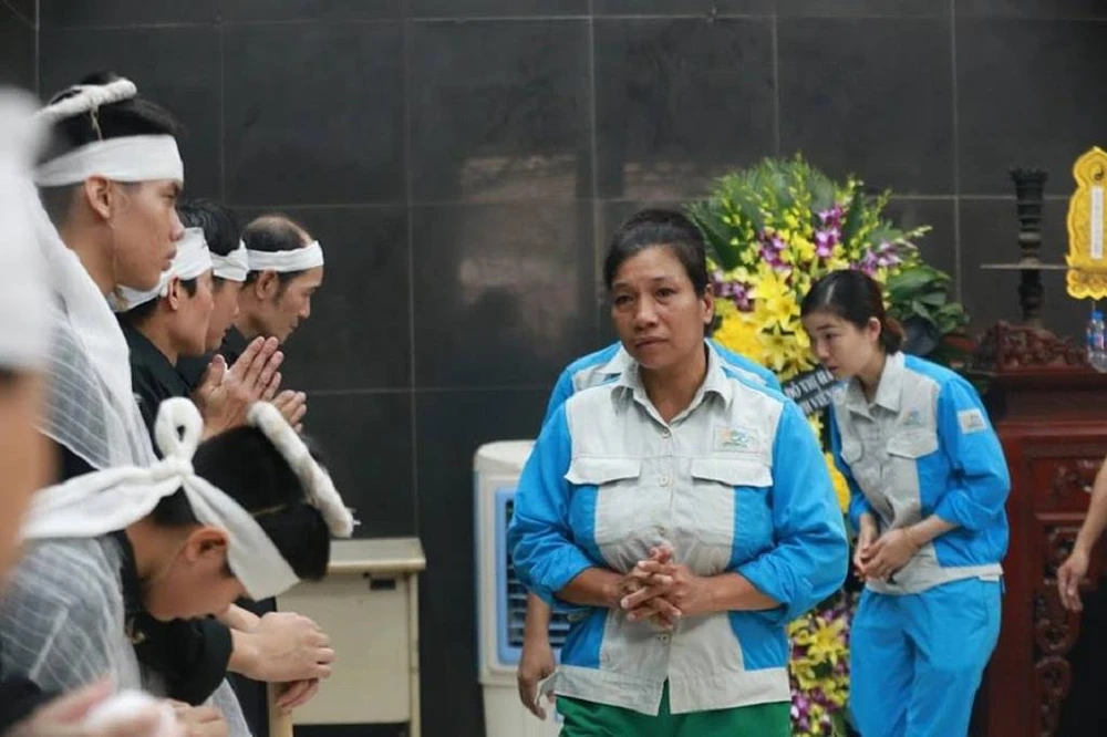 Có mặt tại lễ tang từ khá sớm, chị Lê Thị Thủy, người đồng nghiệp cùng chị Hà quét rác trên đường Láng đêm 22-4 nấc nghẹn khi nhớ lại giây phút kinh hoàng ấy.