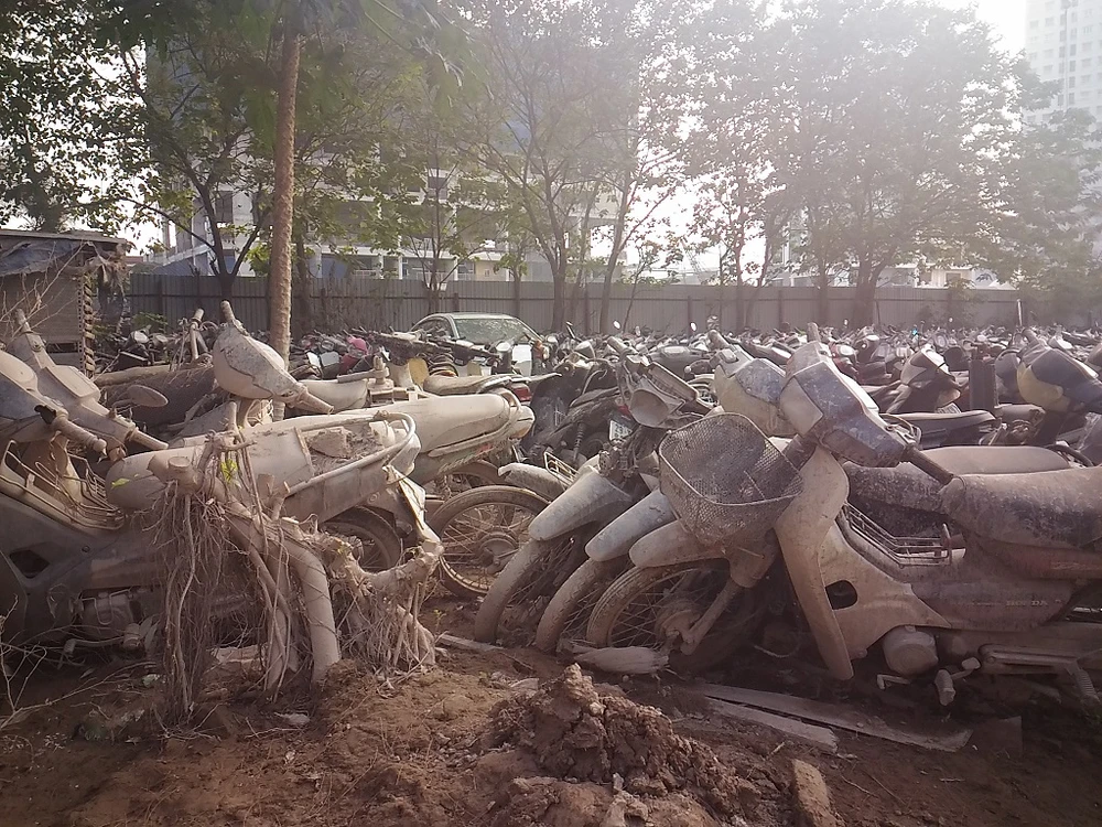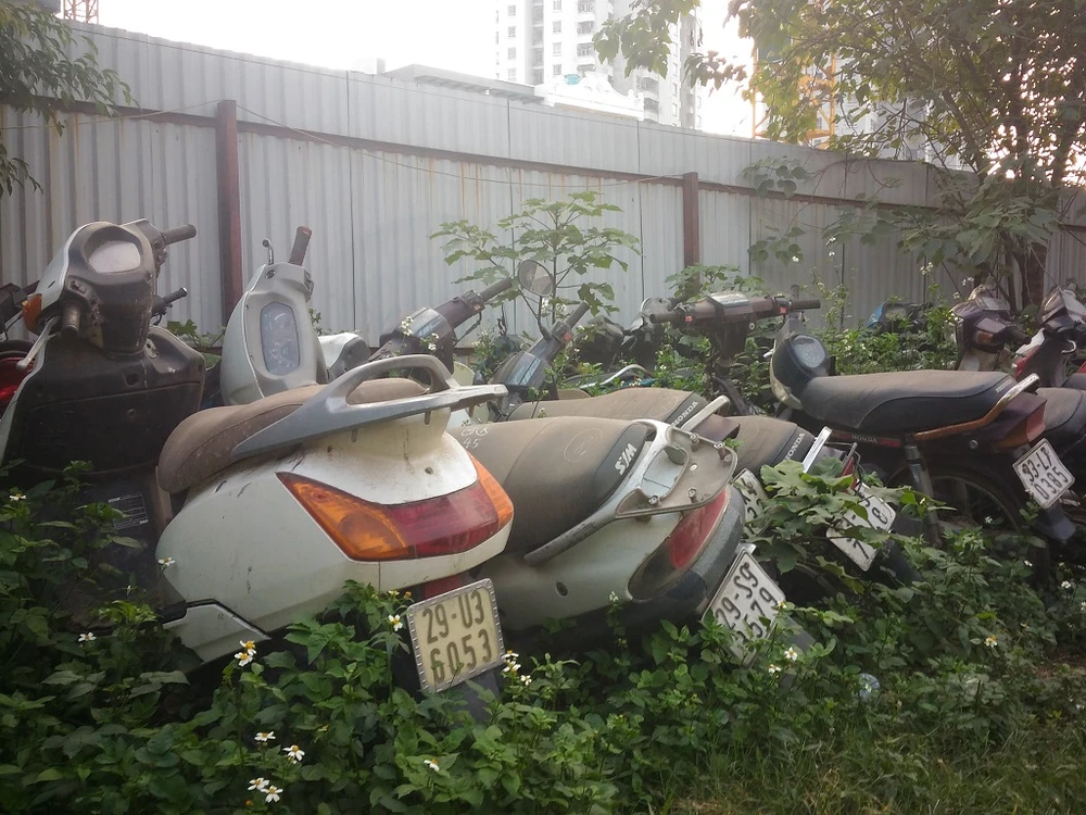Đáng lo ngại, vì không có hệ thống mái che, một lượng lớn phương tiện để ngoài trời tại đây đã bị cỏ mọc bao trùm. Hoặc hơn thế, có nhiều chiếc xe bị đổ ngập bùn đất từ công trình thi công cạnh đó.