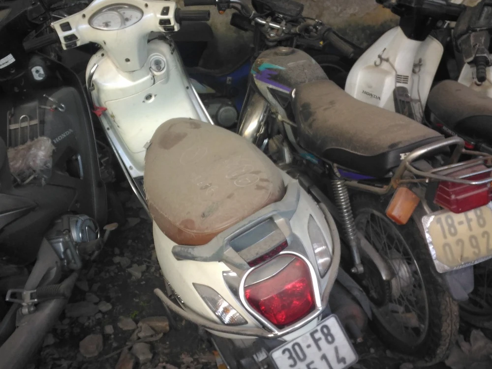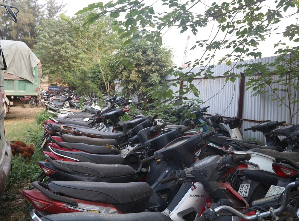 Ghi nhận tại bãi trông giữ xe A5 (Mỹ Đình I, Nam Từ Liêm), nơi tập kết hàng trăm xe vi phạm đến từ nhiều nơi. Từ những chiếc xế hộp, xe ga đắt tiền, xe số đến xe ba gác… đều được xếp xen kẽ nhau, phủ kín bởi lớp bụi.