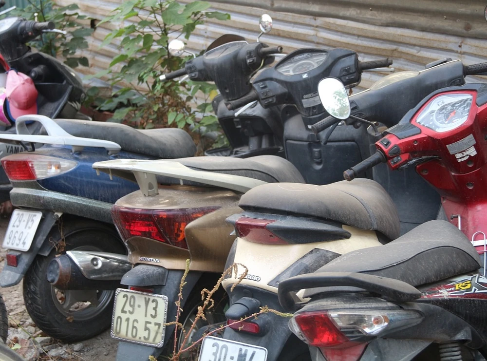 Theo quan sát, bên cạnh các ô tô, phương tiện ở bãi này hầu hết là xe máy và xe ba gác. Trong đó, khá nhiều xe ga đắt tiền như PS, SH, Spacy, Liberty... đều bị phủ một lớp bụi vàng.