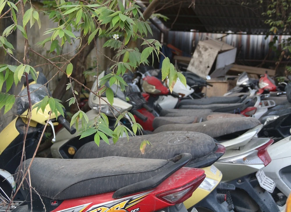Do quá lâu ngày mà chủ không đến nhận lại, một số phương tiện trở thành điểm tựa cho cỏ mọc bao trùm. Phần lớn những xe này đều đã bị hư hỏng nặng cùng thời gian.