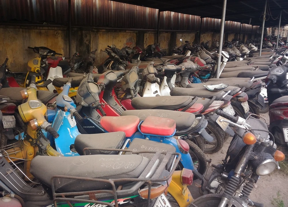 Bãi giữ xe này có diện tích khoảng 4.000 m2 nhưng luôn trong tình trạng quá tải. Đáng chú ý, chỉ một phần nhỏ diện tích của bãi được trang bị hệ thống mái che, phần lớn phương tiện vi phạm khi được tập kết về đây đều phải phơi mình ngoài trời.