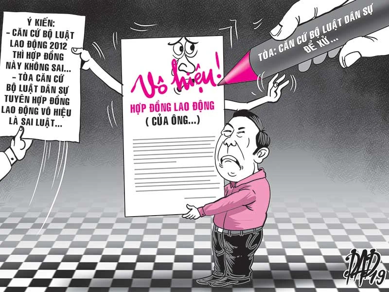 Một thẩm phán Tòa Lao động TAND TP.HCM (đề nghị không ghi tên) phân tích: Điều 50 Bộ luật Lao động 2012 quy định về các trường hợp hợp đồng lao động vô hiệu. Đó là khi toàn bộ nội dung của hợp đồng trái luật; người ký không đúng thẩm quyền; công việc mà hai bên đã giao kết trong hợp đồng là công việc bị pháp luật cấm; nội dung của hợp đồng hạn chế hoặc ngăn cản quyền thành lập, gia nhập và hoạt động công đoàn của người lao động.