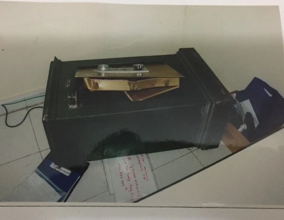 Két sắt bị cạy - tang vật vụ án. Ảnh: CA