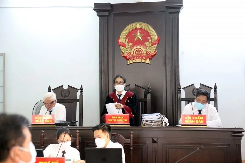 Chủ tọa phiên tòa kiểm tra căn cước các bị cáo.
