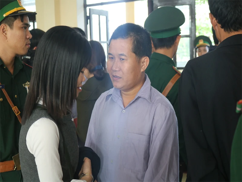 Bị cáo Chính gặp người thân sau phiên tòa. Ảnh: H.TRƯỜNG
