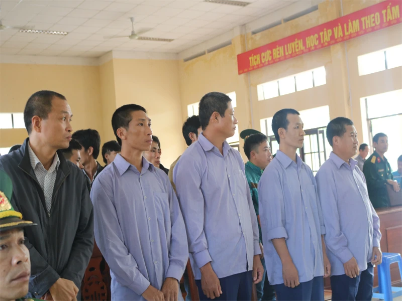 Các bị cáo tại phiên xử chiều 21-1. Ảnh: H.TRƯỜNG