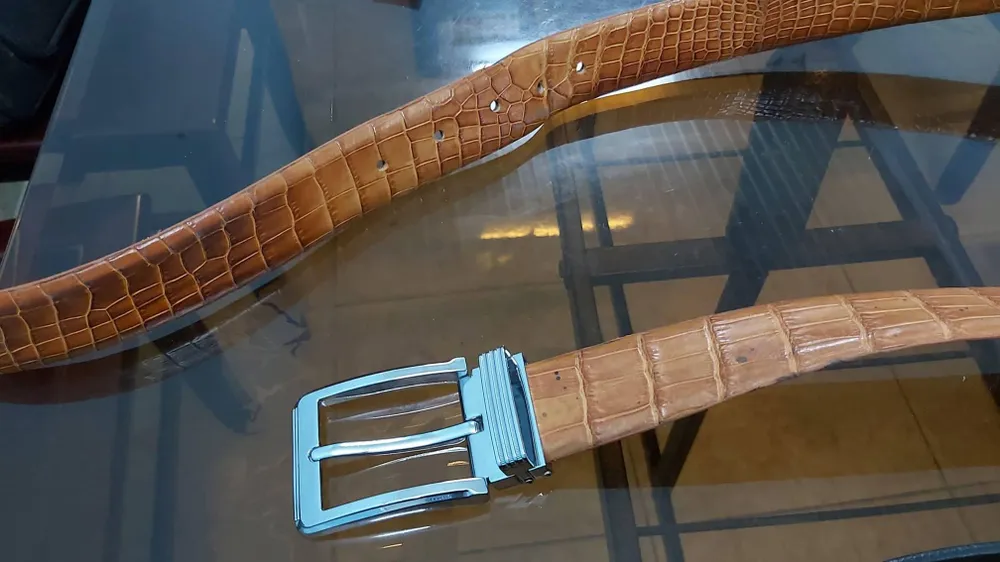 Dây nịt mà chị S. cho rằng chồng đã dùng đánh mình. Ảnh: CTV