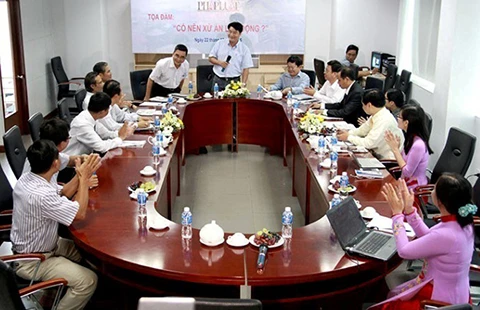 Quang cảnh buổi tọa đàm “Có nên xử án lưu động?” diễn ra tại báo Pháp Luật TP.HCM. Ảnh: HOÀNG GIANG