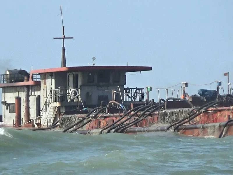 Tàu sa tặc buông vòi hút cát dưới lòng biển Cần Giờ. Ảnh: N.YÊN