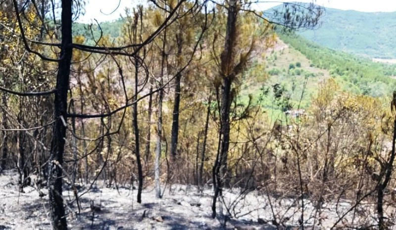Ngày 30-6, vụ cháy rừng thông ở xã Diễn An (huyện Diễn Châu, Nghệ An) đã được dập tắt hoàn toàn. Ảnh: Đ.L