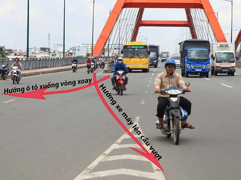 Trước đó, báo Pháp Luật TP.HCM đã phản ánh tình trạng trên cầu Bình Lợi hiện nay (theo hướng lưu thông từ Tân Sơn Nhất về Thủ Đức) có một lối mở để ô tô rẽ phải xuống cầu về vòng xoay Bình Triệu, xe máy rẽ trái để qua cầu vượt.