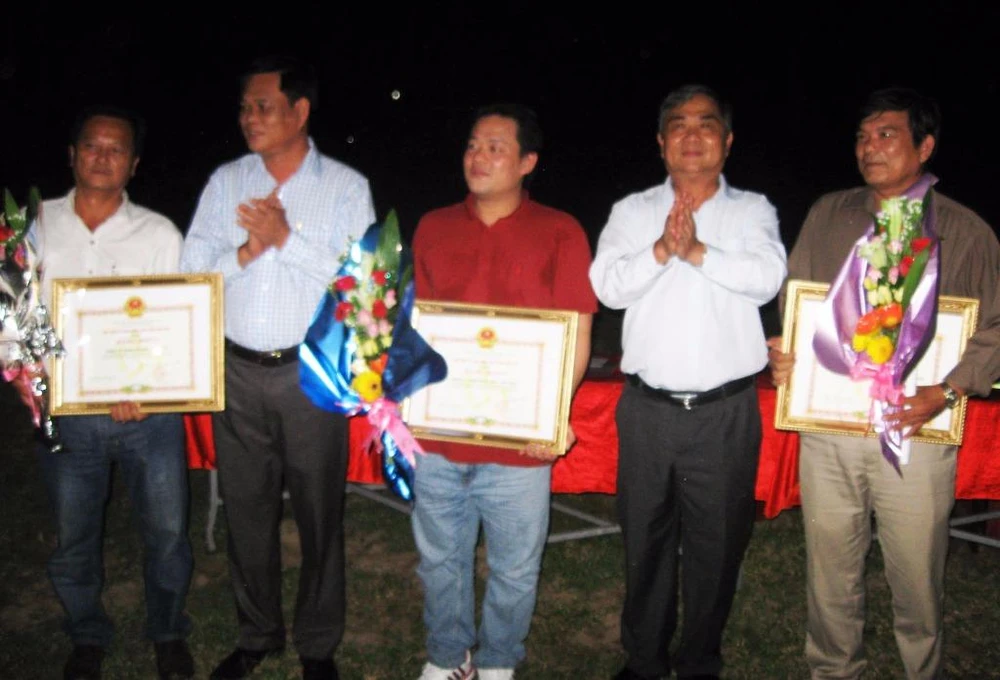 Lãnh đạo tỉnh Phú Yên tặng bằng khen cho các doanh nghiệp, đơn vị triệt phá vụ rừng phòng hộ trái phép ngay tại hiện trường vào ban đêm. Ảnh: CTV