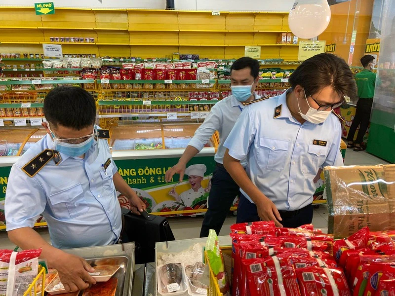 Cục QLTT TP.HCM kiểm tra chuỗi cửa hàng Bách Hoá Xanh tại TP Thủ Đức. Ảnh: TS