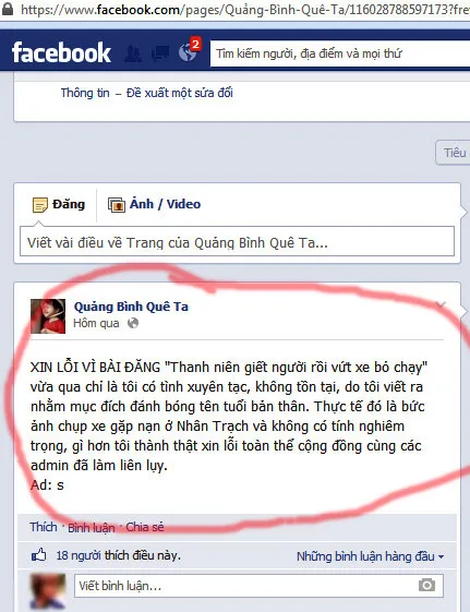 Bằng các kỹ năng nghiệp vụ, Công an tỉnh Quảng Bình đã cử cán bộ xác minh và không khó tìm ra Sơn từ các thông tin trên mạng xã hội. Bất ngờ ở chỗ, khi bị truy hỏi, Sơn thừa nhận chỉ vì muốn nhiều người biết đến mình nên mới “sáng tác” ra câu chuyện trên. Sau đó, Sơn đã có lời xin lỗi vì hành vi câu like phản cảm trên đăng trên facebook .
