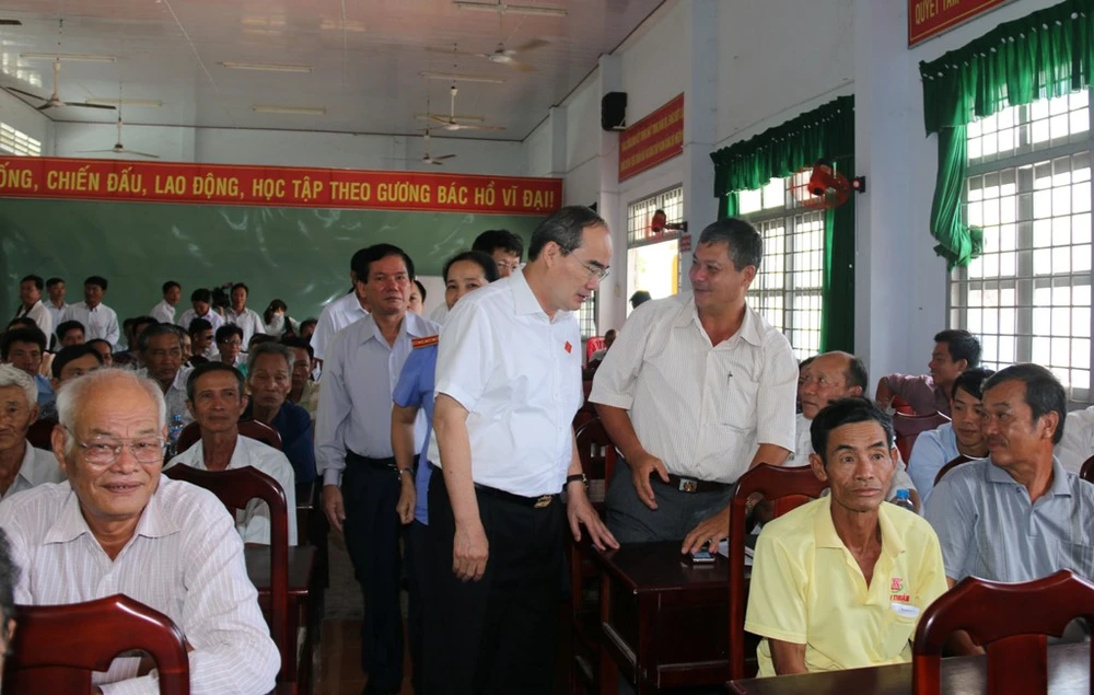 Sáng 12-5, sau khi làm việc tại Công ty Nhiệt điện Duyên Hải, ông Nguyễn Thiện Nhân - Chủ tịch Ủy ban TW MTTQ Việt Nam, Bí thư Thành ủy TP.HCM, đại biểu Quốc hội đơn vị tỉnh Trà Vinh, có buổi tiếp xúc cử tri phường 2 và xã Long Hữu, thị xã Duyên Hải, tỉnh Trà Vinh.
