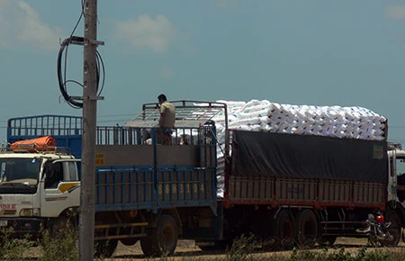 Bãi hạ tải sang hàng tự phát của cánh lái xe để qua trạm cân Bình Thuận. Ảnh: PN