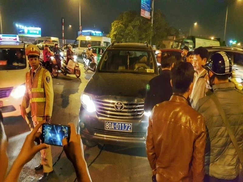Trước đó, khoảng 18 giờ, ngày 18-1, tại chân cầu Chương Dương (Long Biên, Hà Nội) hướng rẽ đi Bát Tràng, lực lượng Cảnh sát giao thông và cơ động (Công an TP Hà Nội) làm nhiệm vụ phân làn nhằm tránh ùn tắc giao thông. Tuy nhiên, anh Nguyễn Duy Thanh, điều khiển xe Fortuner biển xanh 80A – 01172 không chấp hành hiệu lệnh phân luồng và cố tình chồm xe về phía lực lượng làm nhiệm vụ.