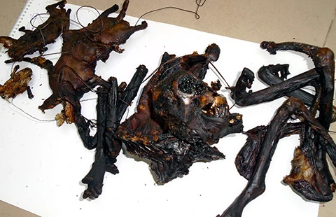 Số thịt voọc chà vá chân nâu thu giữ tại hiện trường. Ảnh: TT