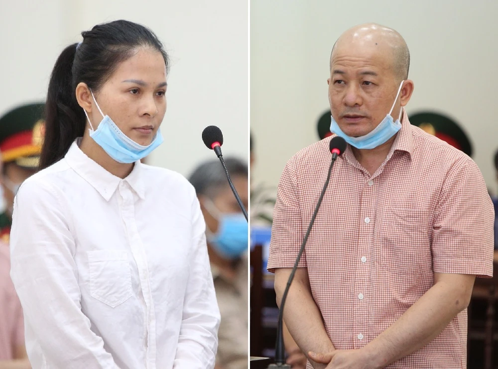 Bị cáo Đinh Ngọc Hệ và Vũ Thị Hoan tại tòa. Ảnh: A.LÚY