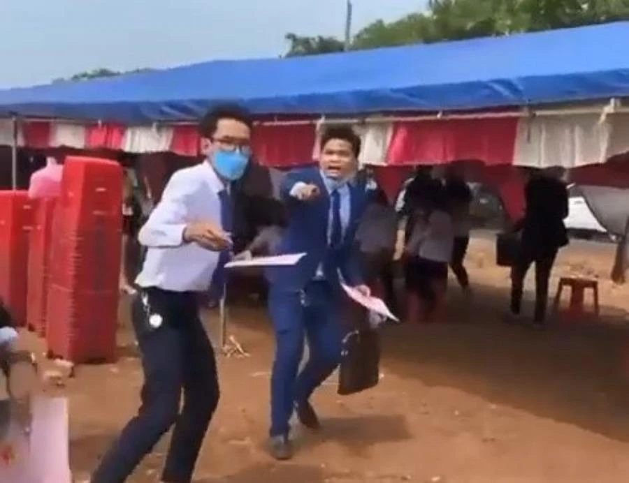Nhân viên công ty này chốt cọc kiểu "sàn diễn lô tô". Ảnh: Cắt từ clip
