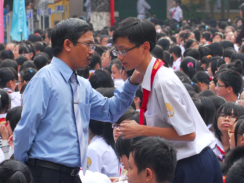 Thầy và trò ở một trường phổ thông. Ảnh: HTD