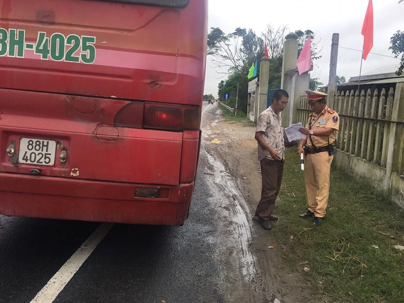 Trưa 5-2, Đại úy Lê Phan Minh Mẫn, Phó trưởng Trạm CSGT Thăng Bình (Phòng PC67), cho biết chỉ trong hai ngày 4 và 5-2, tổ công tác đã phát hiện và xử phạt hàng chục xe khách vi phạm giao thông nghiêm trọng.