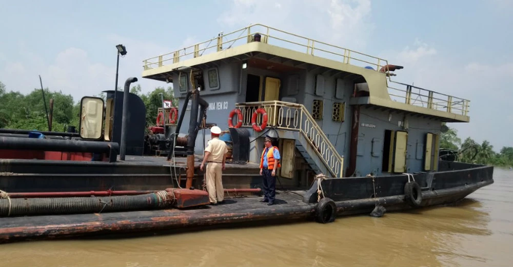 Ngày 8-10, Thanh tra Sở GTVT TP.HCM phối hợp với cảnh sát giao thông đường thủy tuần tra và phát hiện tại bến sông ở khu vực ngã ba Rạch Gò Công - Sông Tắc - Long Đại thuộc phường Long Bình, quận 9 có hơn 10 phương tiện xà lan, máy bơm đang bơm hút cát từ xà lan lên bờ. Khu vực này thuộc bến sông không có phép được khai thác cat.