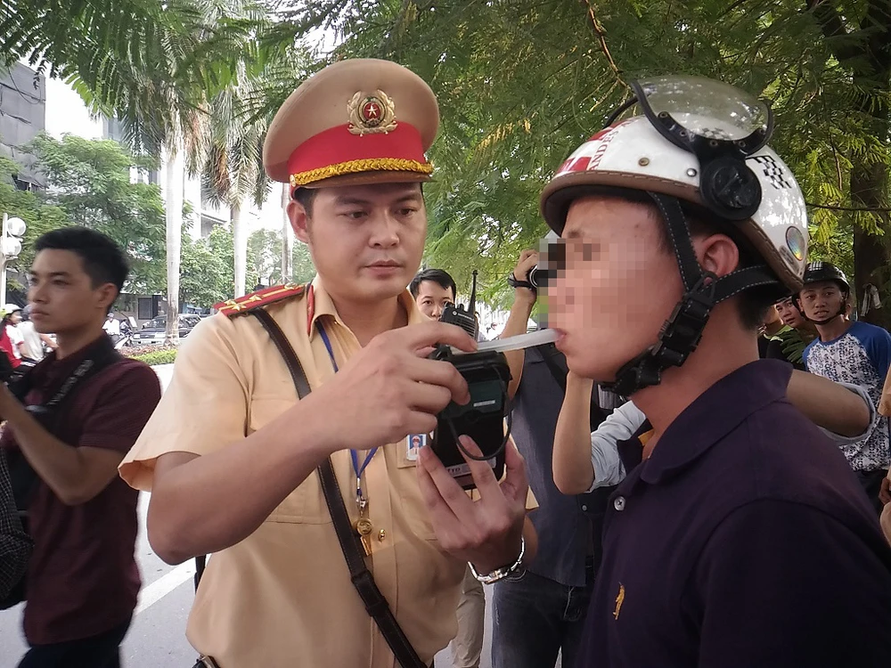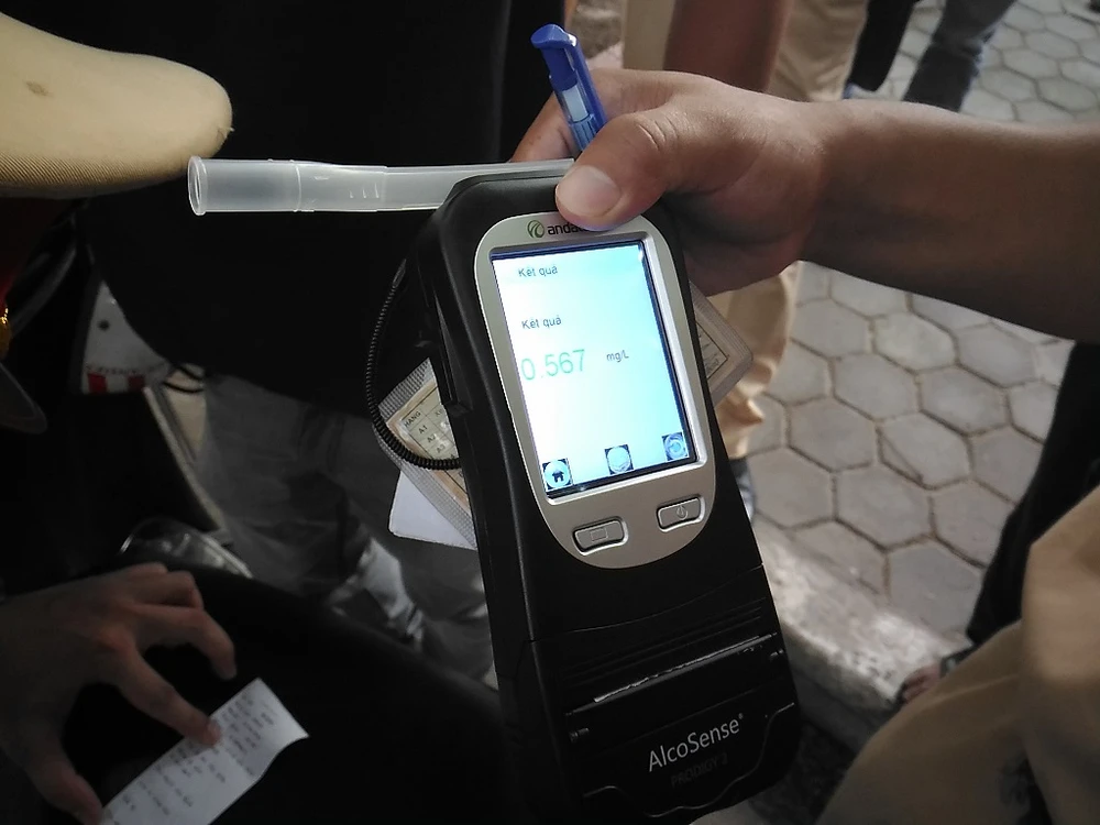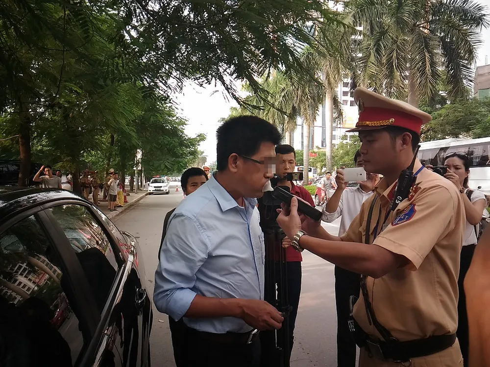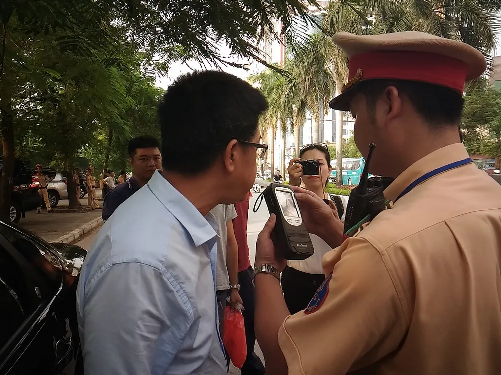 Nếu thấy có hơi men, các tài xế sẽ tiếp tục thổi vào máy đo nồng độ cồn chuyên dụng (ống dài) để kiểm tra chính xác tỉ lệ nồng độ cồn trong hơi thở
