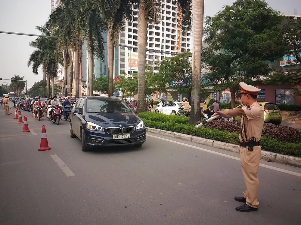 Ghi nhận tại khu vực ngã tư Lê Đức Thọ - Hàm Nghi (Nam Từ Liêm, Hà Nội), nơi diễn ra buổi tập huấn, đoạn đường dài khoảng 100m đã được lực lượng CSGT phân luồng, phục vụ công tác tập huấn.