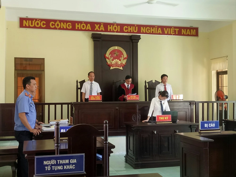 Huỳnh Hữu Nhơn (áo đỏ) tại tòa.