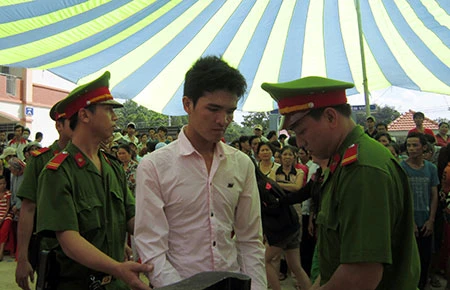 | Giọt nước mắt hối hận Trong khi chờ tòa nghị án, Lê Văn Nghiêm hết đưa mắt nhìn người thân rồi lại cúi đầu, mắt đỏ hoe. Nghiêm cho biết chỉ học hết lớp 5 rồi nghỉ, đi làm thuê phụ giúp gia đình. Năm 2013, cha mẹ Nghiêm sức khỏe yếu do bị bệnh, Nghiêm lên Bình Dương làm công nhân gửi tiền về phụ cha mẹ nuôi em trai đi học. “Tối đó, thấy mọi người rủ nhau đi tuần hành nên em đi theo. Sau đó, công an xã đến bảo giải tán nhưng em tiếp tục cùng mọi người ra trước cổng công ty hô hào, đập cổng… Em không biết lúc đó vì sao em lại có hành động như vậy nữa. Em xin lỗi gia đình và mọi người, em rất hối hận. Em sẽ cải tạo tốt để sớm được ra tù đi làm phụ giúp gia đình. Mong các bạn công nhân đừng để bị kích động, đừng có hành vi như em vì tội mình gây ra rồi giờ có hối hận cũng muộn” - Nghiêm rơm rớm nước mắt.