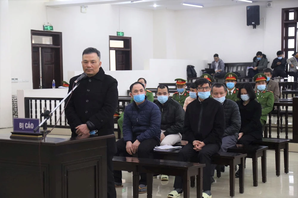 Lê Xuân Giang (đứng) cùng các bị cáo tại tòa ngày 22-12.