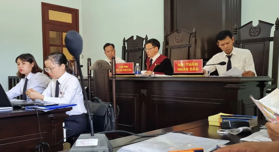 HĐXX đang tiến hành thủ tục phiên xử. Ảnh: CTV
