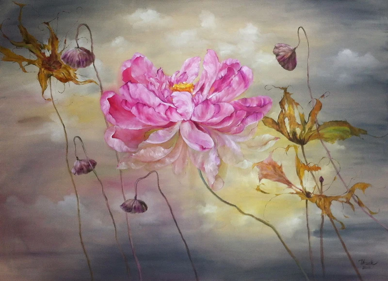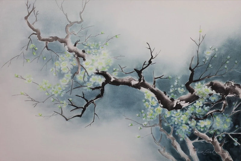 Mùa xuân của họa sĩ Ngọc Anh là sự chỉnh chu từ trái quýt, cành hoa như lễ giáo gia phong trong mỗi nếp nhà. Mùa xuân của họa sĩ Thanh Lê là một thế giới sen huyền hoặc như triết lý nhà Phật.