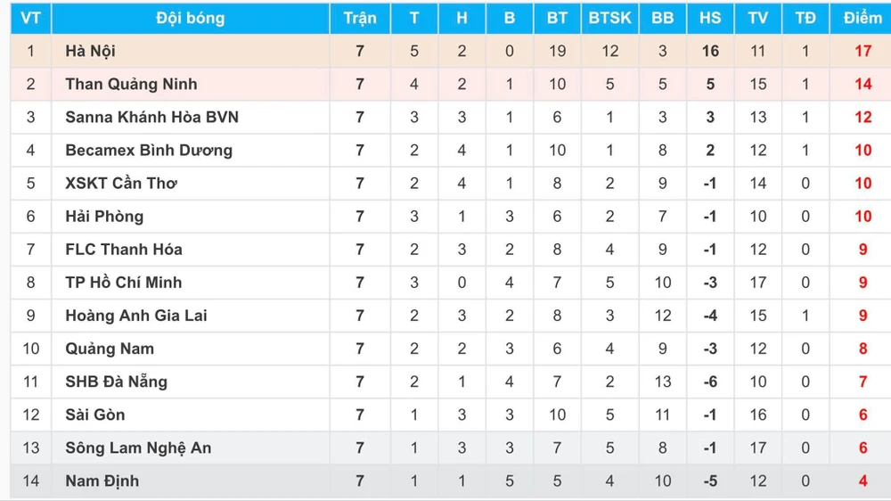 Kết quả các trận đấu khác vòng 7 NutiCafe V-League 2018: TP.HCM – Hà Nội 1-4, Cần Thơ – Than Quảng Ninh 1-1, Hải Phòng – SHB Đà Nẵng 3-2, B. Bình Dương – Quảng Nam 3-1, Thanh Hóa – Sài Gòn 1-1, SL Nghệ An – Nam Định 0-1.