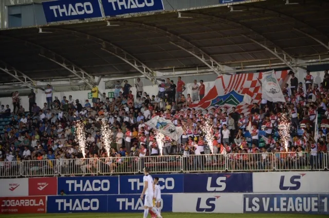 CĐV Hoàng Anh Gia Lai ăn mừng bàn thắng của đội nhà...