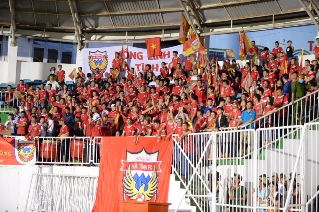 ... trong khi các CĐV Hà Tĩnh nuối tiếc khi những cơ hội bị trôi qua. Ảnh: HÀ NGỌC.