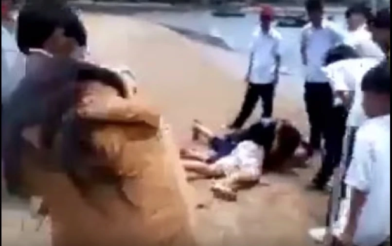 Theo clip, một nhóm học sinh (trong đó có học sinh mặc đồng phục trường, đeo khăn quàng) tập trung tại khu vực biển Bãi Trước. Trong khi hai nữ sinh xông vào đánh, đấm, đá, kéo tóc nhau thì những học sinh khác đứng xunh quanh cổ vũ, bình luận và dùng điện thoại quay lại. Nhóm học sinh này không có dấu hiệu can ngăn việc đánh nhau của hai nữ sinh trên.