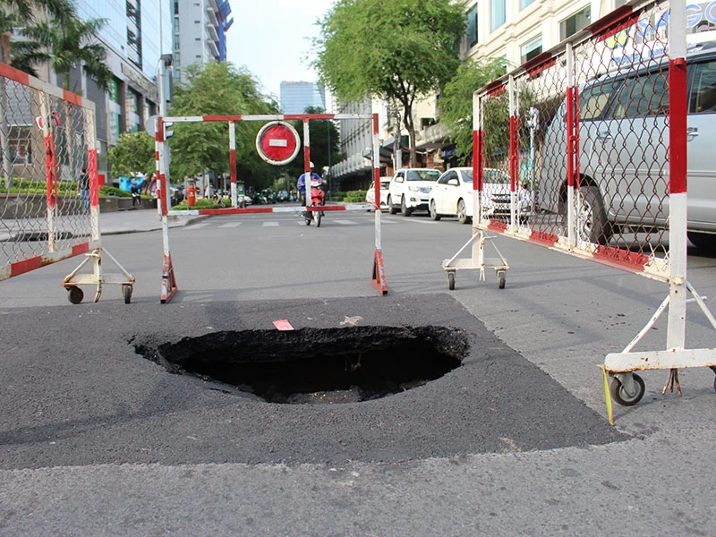 Đại diện khu quản lý giao thông đô thị số 1 cho biết, nguyên nhân gây ra sự cố trên là do đường ống cấp nước bị vỡ làm nước rò rỉ cuốn trôi phần đất bên dưới lòng đường.