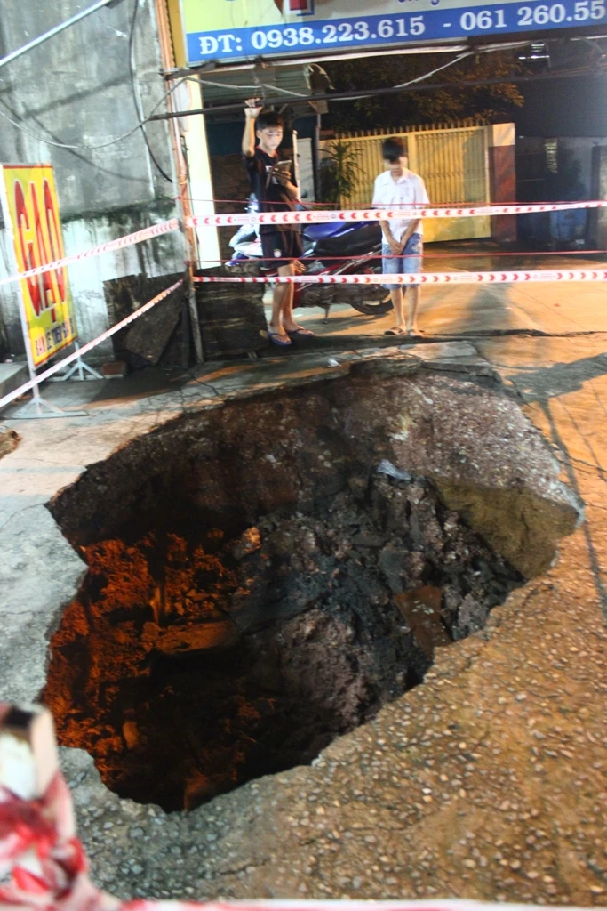 May mắn thời điểm hố bị sụt không có ai đang đứng tại đây nên không có thương tích về người.
