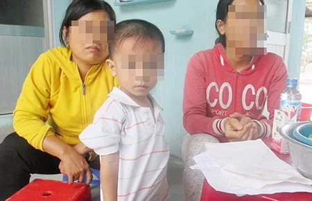 Bà Vân (bìa trái) và mẹ con bé Hạo Dân, được giới thiệu là bé Quốc Hòa trước đây. Ảnh: HM